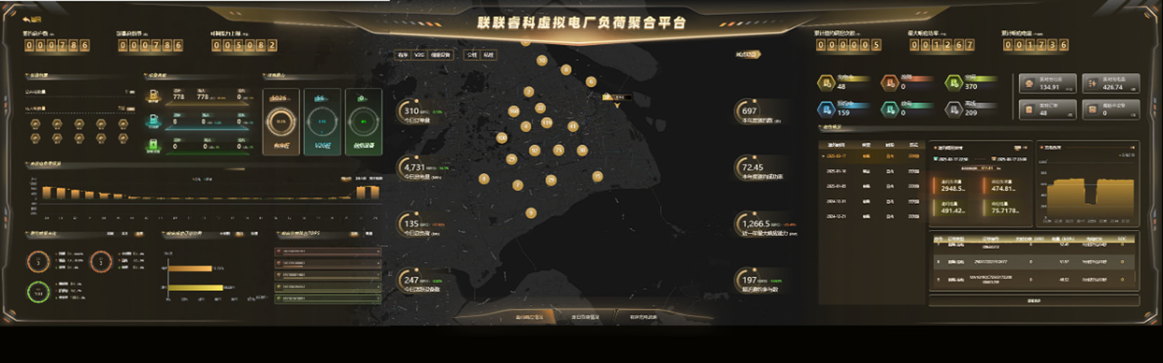 针对海量需求侧灵活性资源接入、聚合调控及交易决策等核心业务需求,依托“云-边-端”智慧物联、人工智能预测和优化调控等关键技术构建虚拟电厂资源聚合平台,实现对虚拟电厂资源全景化、可视化、精细化管理。平台具备用户可调线路管理、可调资源管理、负荷预测分析、需求响应事件管理、响应能力调控测试等功能,支持与储能电池管理系统、建筑能源管理系统、V2G充电站监控系统的接口互联与数据集成,聚合需求侧可调资源参与电网调峰。